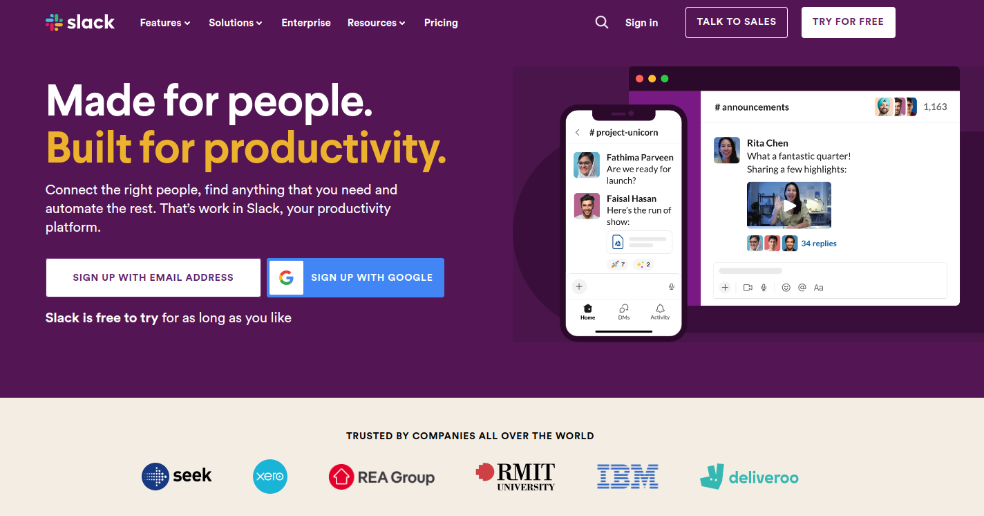 2. Slack for chat and messaging