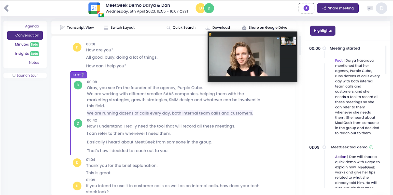 Customer success depends on your ability to make data-driven decisions. That's why we offer Meeting Insights — the AI-powered feature that gathers data from conversations and creates personalized customer insights.