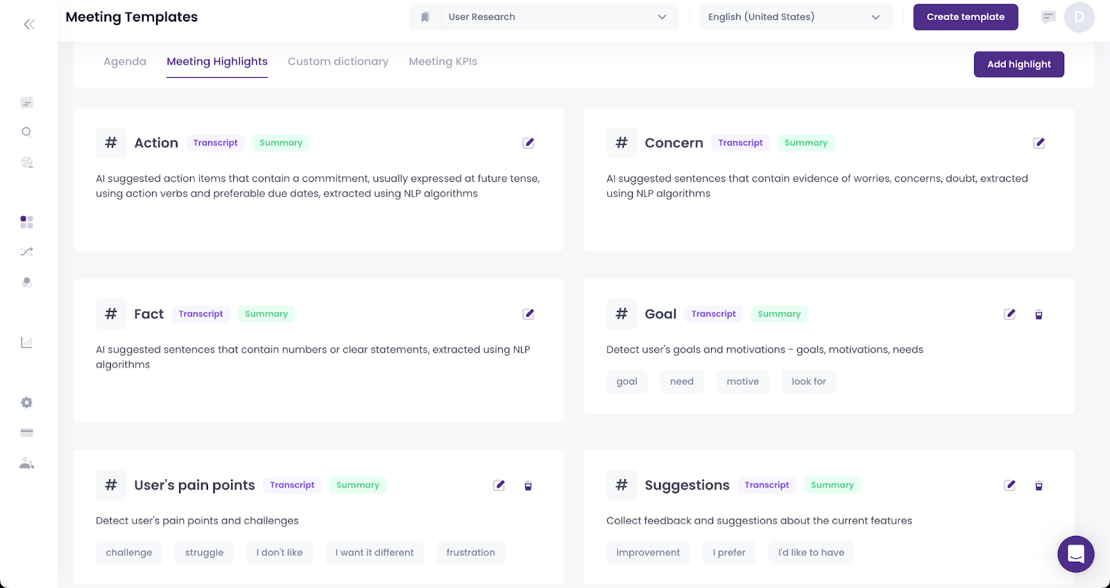 Since we know that asking good questions and getting the answers you need is a critical part of the customer discovery process, we recommend considering our meeting templates feature.