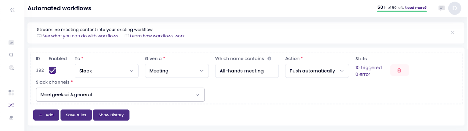 We integrated EmeetGeek with our Slack workspace so that the summary of every all-hands meeting is automatically sent to our #general channel, where we can comment on the key takeaways and decisions in the thread.