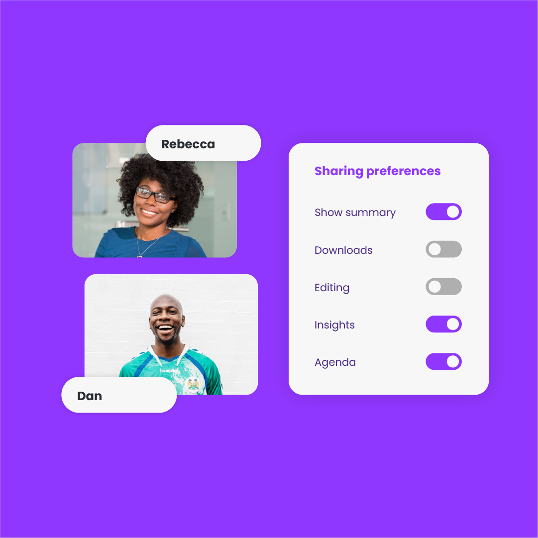 Unlike Fireflies, EmeetGeek provides you with a more enjoyable post-meeting experience. View, edit, and share the notes and transcripts after the meeting. You can also set access rules for team members or customers and decide what meeting assets and settings they can access.