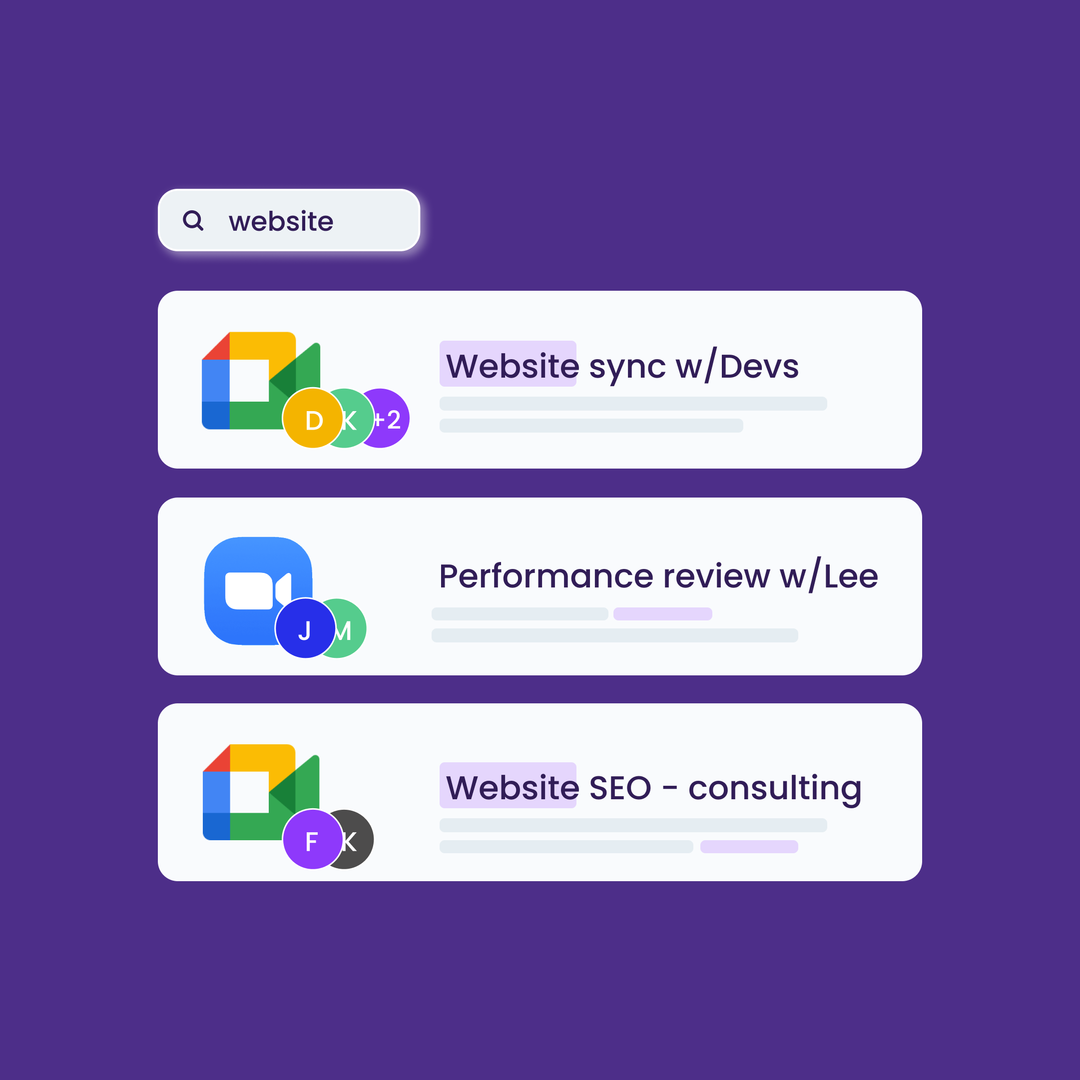 ✔️ Search personal and shared past meetings by keyword, date, or participants.