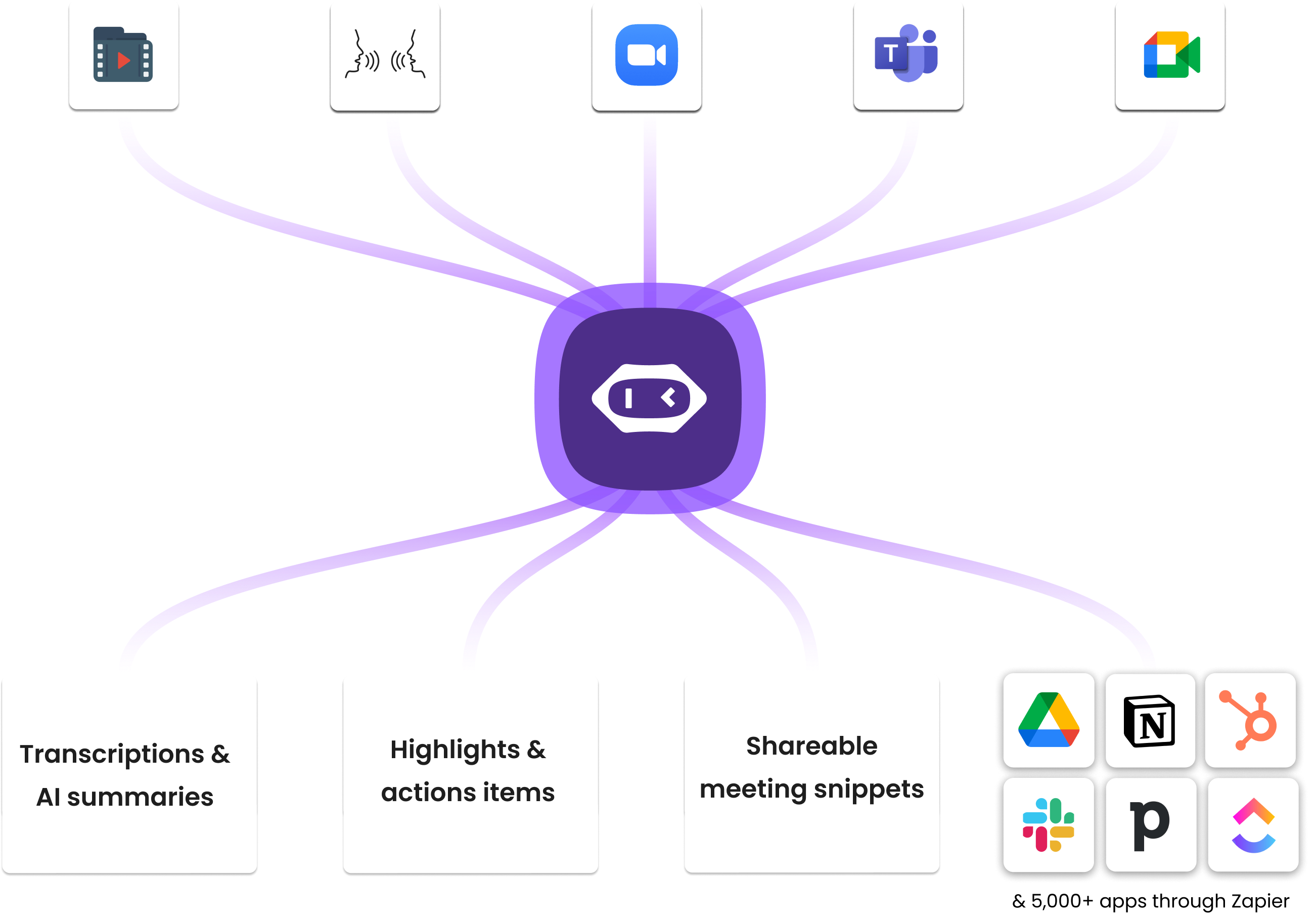 Get more out of your meeting notes, recordings, and insights by automatically syncing them with other tools from your stack.