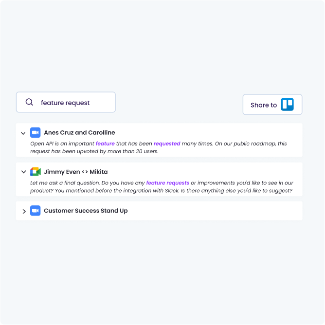 share granular insights from every meeting to any tool.