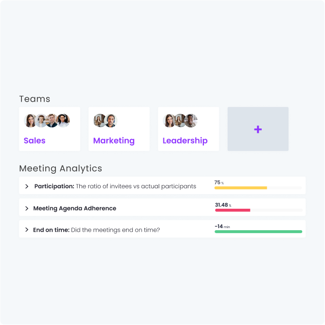 Collaborate and share knowledge from past meetings. Leverage meeting insights to coach your team, fostering a stronger and more agile meeting culture.