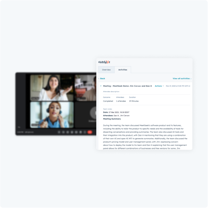 Keep using your favorite tools while Emeetgeek automatically syncs your client's meeting content and key highlights with HubSpot and wherever else the team gets work done.